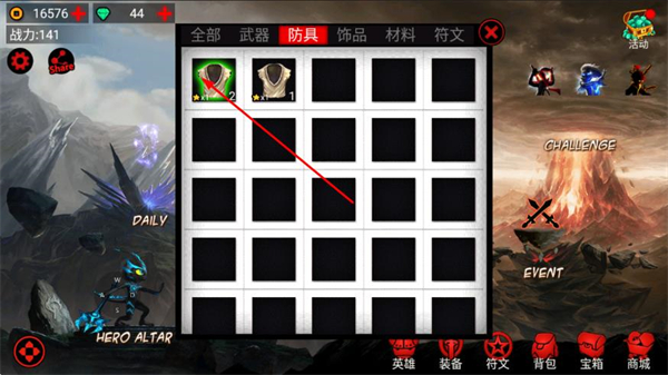 1、在火柴人联盟主界面,点击底部的背包,进入背包页面。