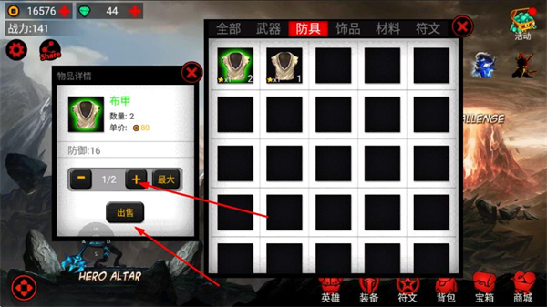 4、在物品详情窗口中,调整出售数量后点击出售,完成装备的出售操作。