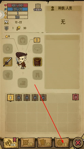 2、进入角色界面后,点击底部的设置按钮,进入设置页面。