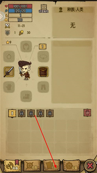 2、在角色界面中,点击底部的日志按钮,进入日志页面。