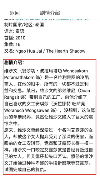 3、在剧情介绍页面,查看制片信息、集数及详细剧情介绍等内容,完成作品信息浏览。