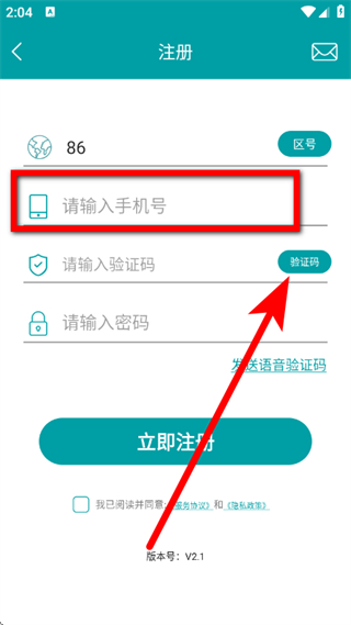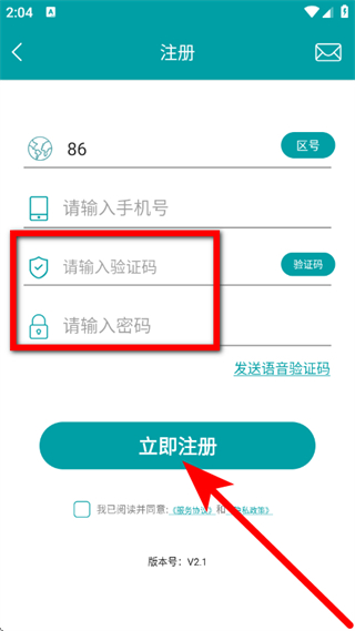 4、输入验证码,设置密码,勾选后,点击立即注册,完成账号注册。