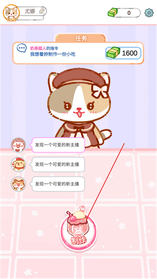 1、在任务界面,点击制作按钮,开始制作小吃,推进关卡流程。