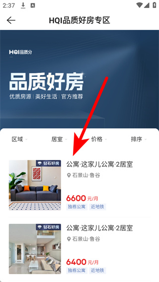 3、在品质好房专区中选择目标房源,点击进入该房源的详情页面。