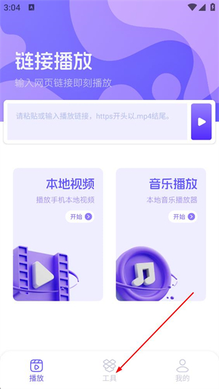 1、在播放页面,点击底部的工具选项,进入工具箱页面。