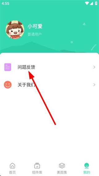 2、在个人页面中,找到并点击上方的问题反馈选项。