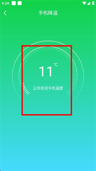 2、进入手机降温页面后,等待系统自动检测手机当前温度。