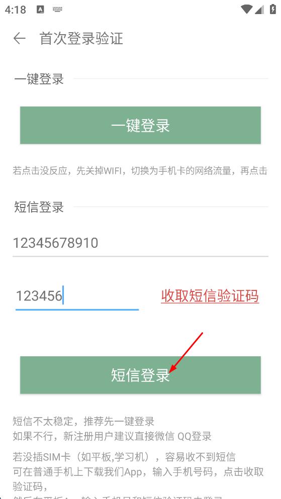 4、输入完成后,点击绿色“短信登录”按钮完成登录。