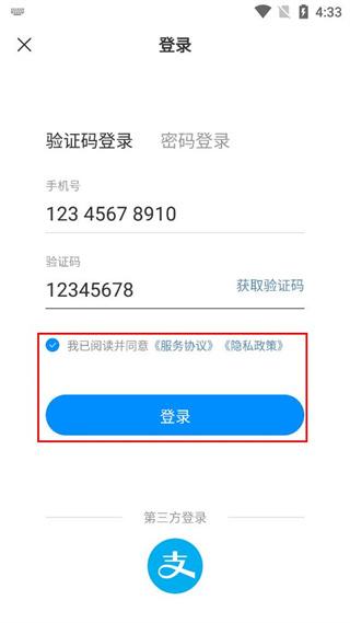 4、勾选我已阅读并同意相关协议的选项,确认信息无误后点击页面中的登录按钮。