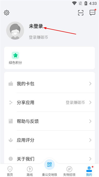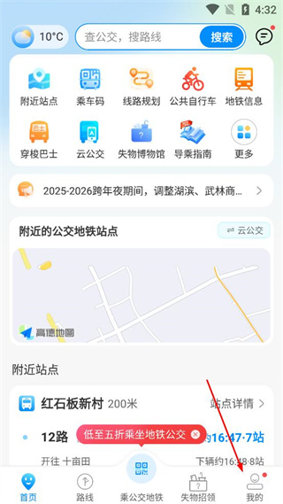 1、进入公交查询软件的首页,找到页面下方的我的选项,点击该选项进入个人中心页面。