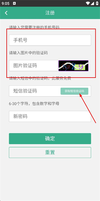 2、在注册账号页面填写手机号码和图片验证码后,点击获取验证码。