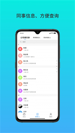 整合企业内部人员信息,支持快速检索与查看,员工无需手动保存联系方式,随时调取同事信息发起沟通,有效节省沟通准备时间。