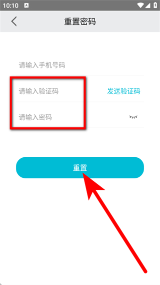 3、输入验证码,设置新密码,点击重置,完成密码重置。