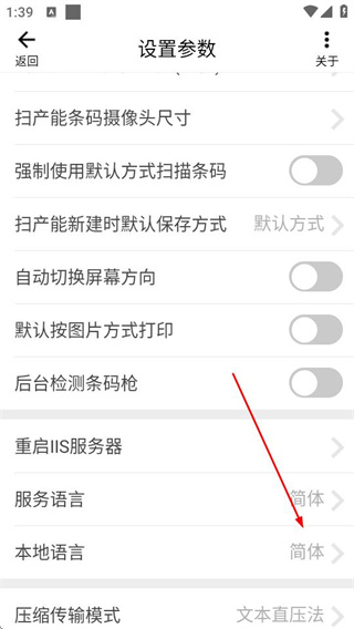 2、在设置参数页面,点击本地语言选项,可打开本地显示语言选择弹窗。