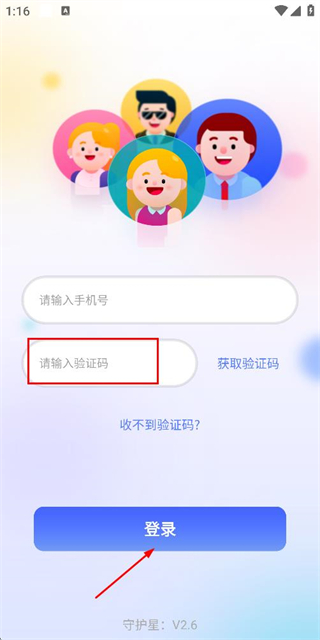 3、在验证码输入框中填写验证码,点击登录完成账号的登录操作。