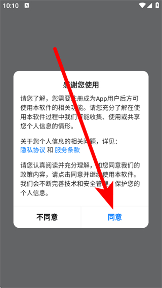 1、打开爱为物联,在提示弹窗,点击同意,进入登录页面。