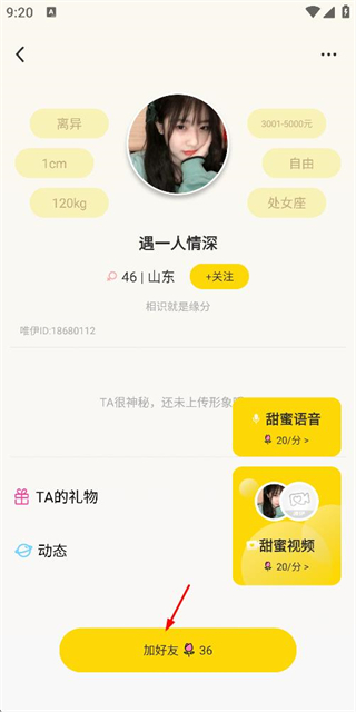 3、在用户详情页面点击底部的加好友按钮,完成联系方式的添加。