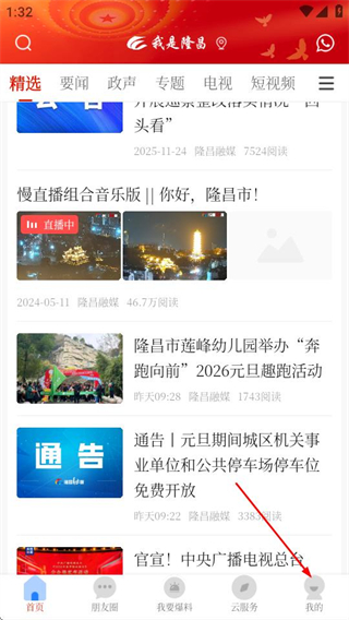 1、进入我是隆昌后,点击底部的我的选项,可进入个人中心页面。