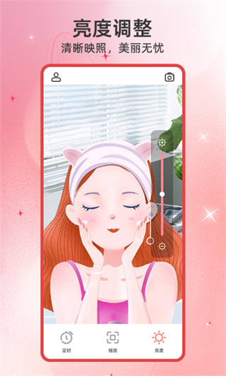 智能缩放调节工具,根据需要自由调整镜像大小,从局部细节到全身整体,轻松查看更多内容,尤其适合检查皮肤状态、妆容细节等,提升使用便利性与实用性。3、亮度调节