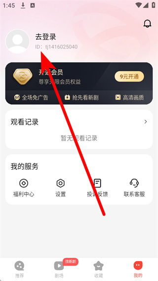 2、在个人界面里,选择去登录,进入登录界面。
