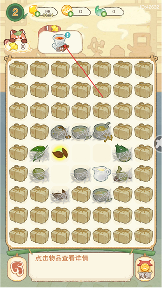 2、点击场景中的物品,查看道具详情,熟悉各类茶相关道具,积累资源。