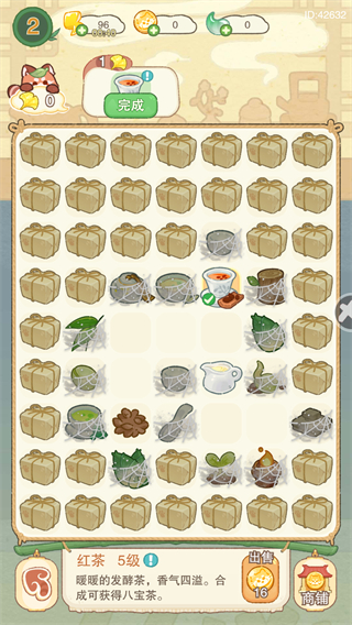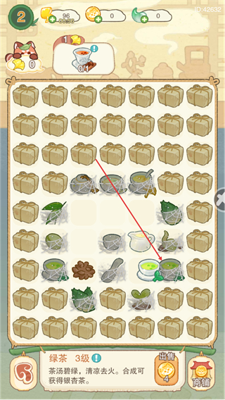 4、合成道具获得3级绿茶,解锁新道具,积累茶类资源,推进游戏流程。