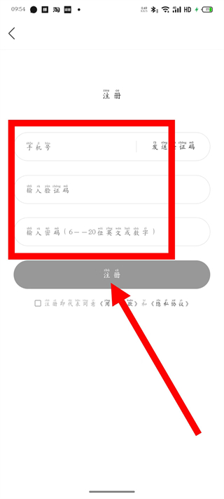 4、在注册页面,输入手机号和验证码,设置密码,勾选相关协议后,点击注册,完成账号注册。