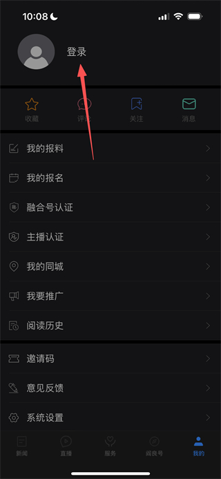 2、在个人中心页面,点击登录区域,可进入账号密码登录页面。