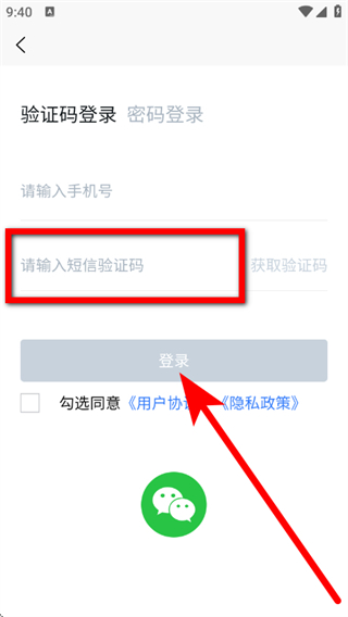 4、输入短信验证码,勾选同意协议后,点击登录,完成登录。
