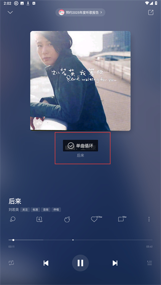 4、不断点击后,当页面显示单曲循环表示设置成功。