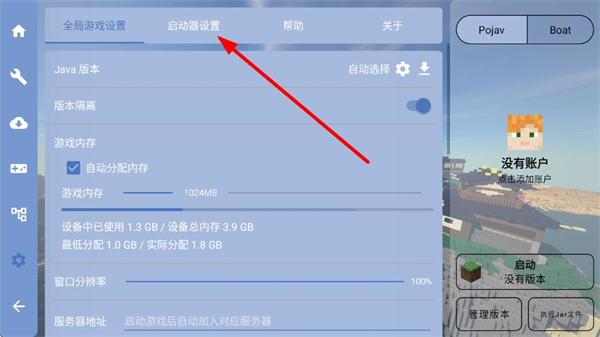 3、调整性能参数,优化游戏运行表现,根据设备配置平衡画质与流畅度,高级设置可微调JVM参数。