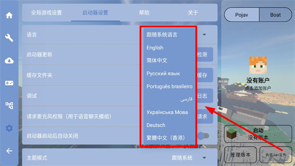 4、在展开的语言列表里,可选择目标语言,完成后即可将启动器语言切换为所选类型。