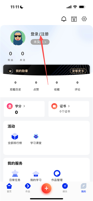 2、在个人中心页面,点击登录注册区域,可进入登录页面。