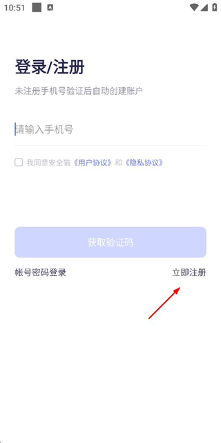 1、在登录页面点击立即注册选项,进入注册账号页面。
