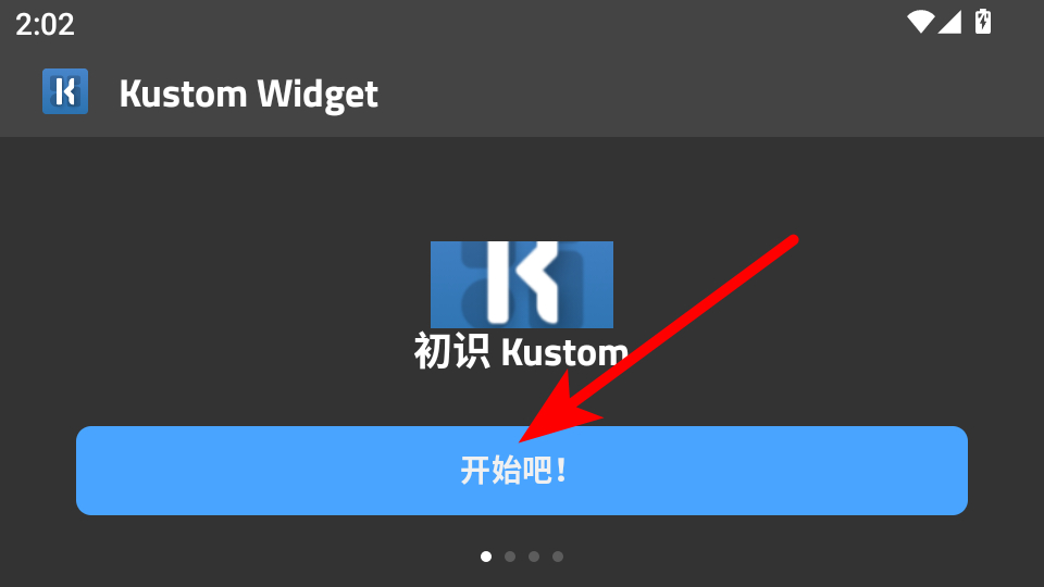 1、打开KWGT,在初始页点击开始吧进入下一步。