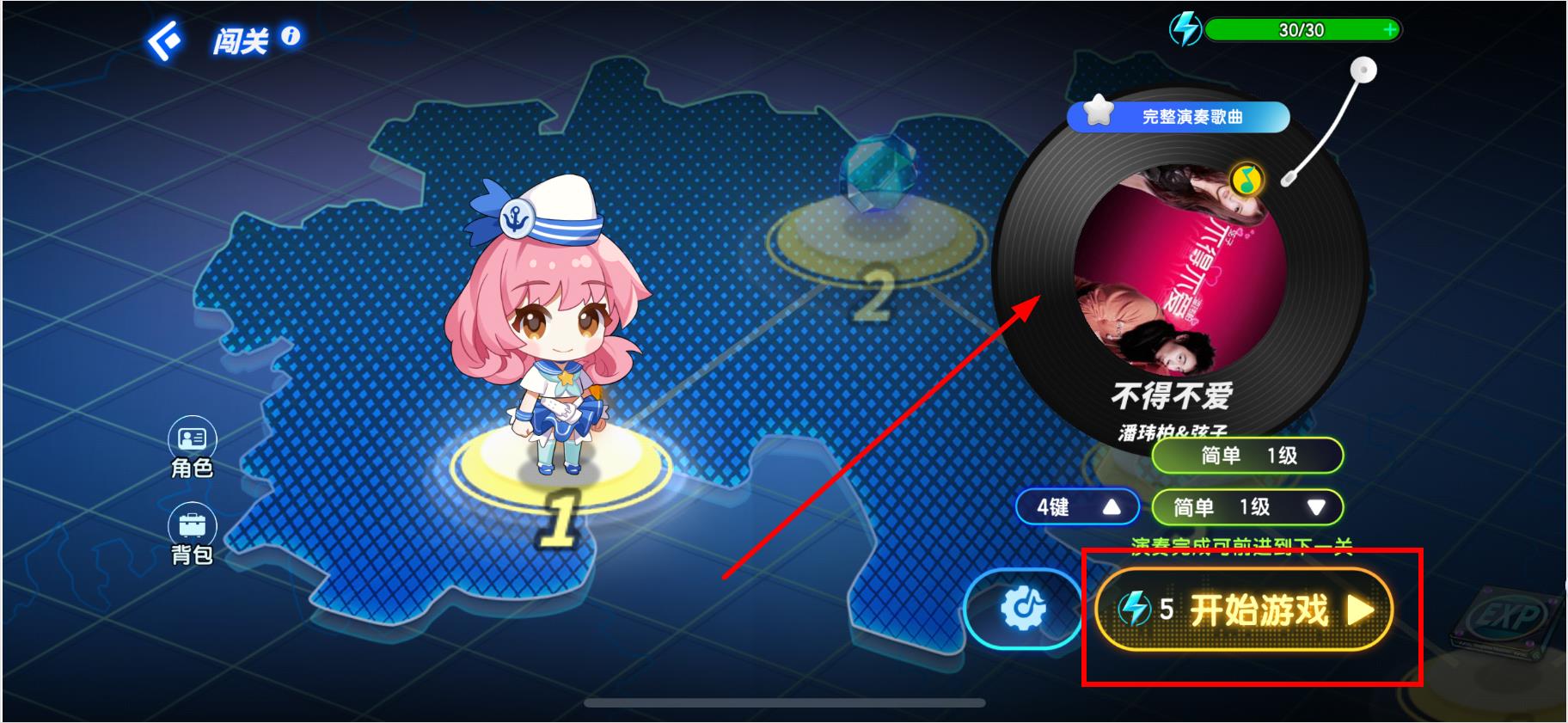 3、选择要演奏的歌曲以及难度、键位等设置,再次点击开始游戏,完整演奏歌曲即可完成闯关。