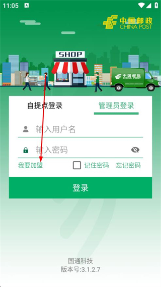 1、在中邮e通登录界面,点击我要加盟选项,进入新商户加盟申请页面。