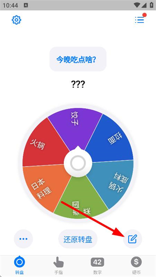 1、在转盘页面,点击右下角编辑图标,进入编辑页面。