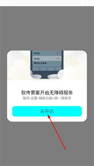3、在弹出的软件需要开启无障碍服务提示框中,点击去开启。