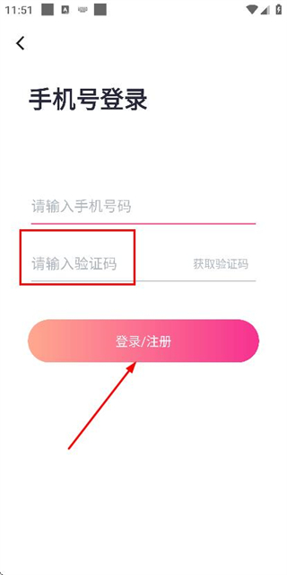 2、在手机号登录页面填写手机号后,点击获取验证码。