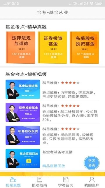 基金从业资格考试题库软件是专为广大需要备考基金从业资格证考试的在线学习app,包含真题测试,模拟考试,历年习题等多项学习方式选择。极大地满足用户的多样化学习需求,帮助大家轻松备考,欢迎有需要的用户前来下载使用!