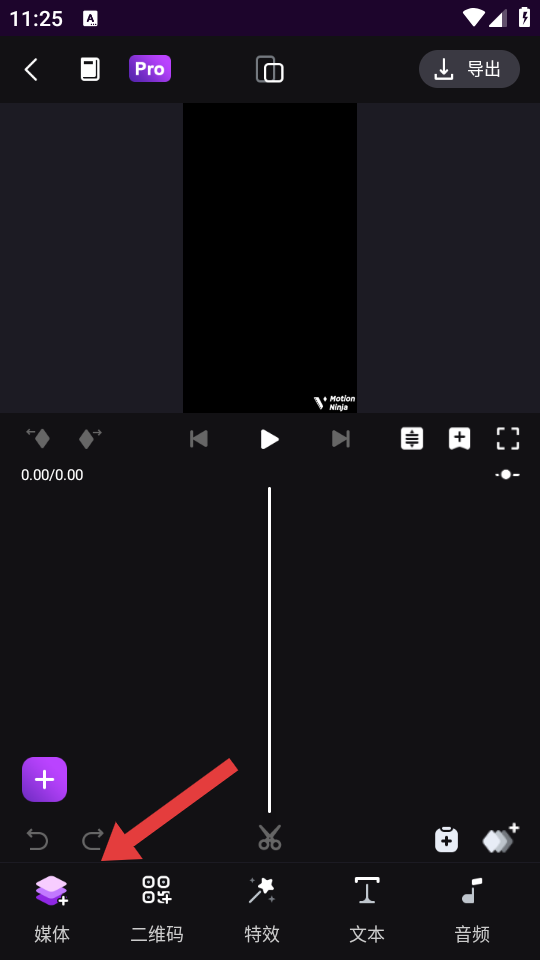 3、在编辑的界面,我们需要点击媒体,进入素材选择的界面。