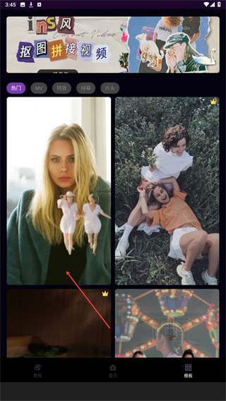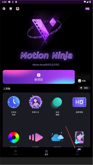 1、启动MotionNinja,进入时点击右下方模版的按钮。