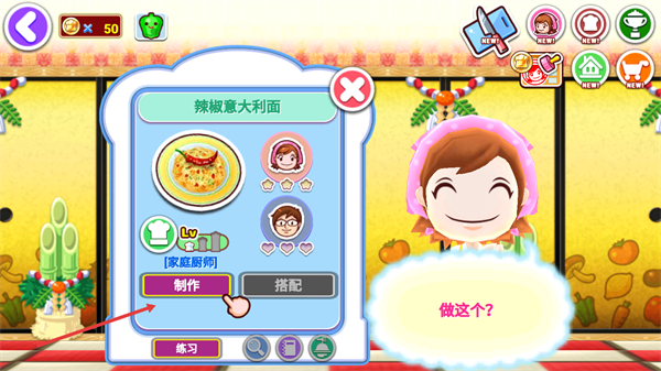 3、两大模式乐趣无穷:划分“让我们来做东西吧”和“让我们来挑战吧”两大模式,前者体验经典菜谱制作争取妈妈肯定。