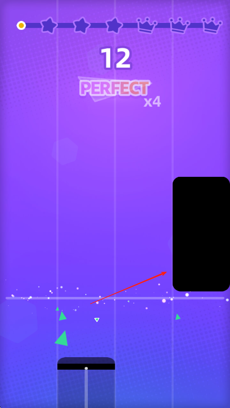 2、当黑色方块移动到白色线条位置,迅速点击黑色方块,点中会显示PERFECT并计分。
