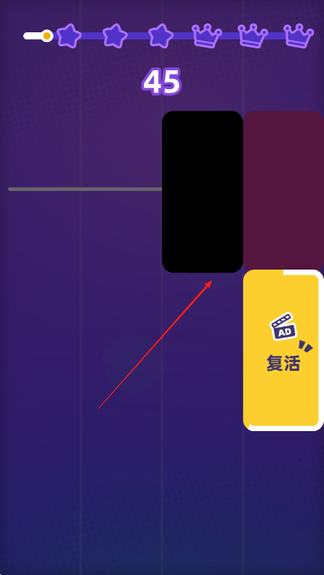 3、持续按节奏点击黑色方块,若错过可使用复活功能重新挑战,争取更高分数。