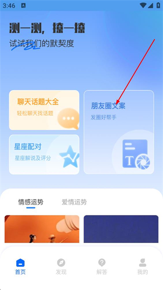 2、在APP首页,点击朋友圈文案选项,进入朋友圈文案的内容页面。