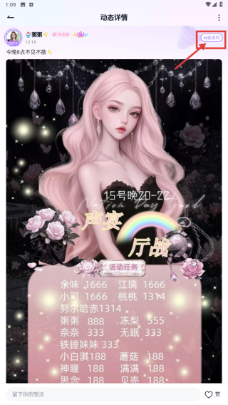 3、在歌手动态列表里,选择目标动态,点击进入动态详情页面。