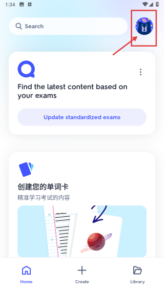 1、打开学习类APP,点击右上角头像,进入个人资料Profile页面。