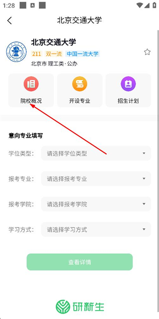 4、在北京交通大学详情页面点击院校概况选项,查看该院校的相关信息。